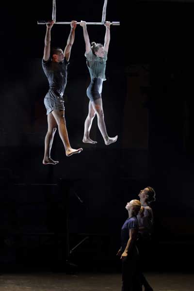 In this sense, the whole show is a kind of dance that embraces the various acrobatics and other circus acts that provide the punctuation within it. All of the performers, in addition to being expert at their respective circus acts, are also great movers and dancers. The intoxicating lilt and spirit of the show prevails throughout and the community of performers, under the nuanced and pointed guidance of director Carroll, contribute exquisitely to the collective result.